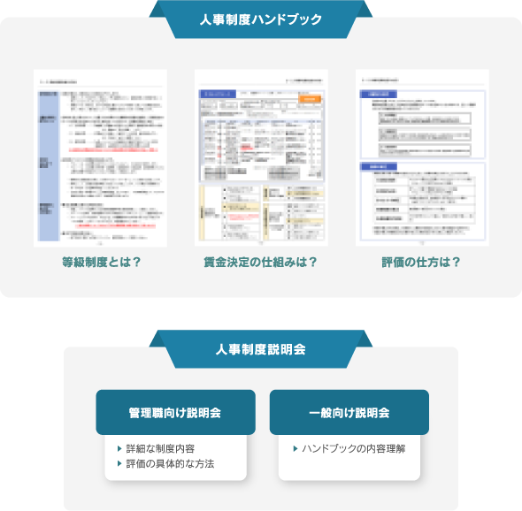 構築した人事制度の導入を円滑にするため、ハンドブックを作成し、説明会を実施します。