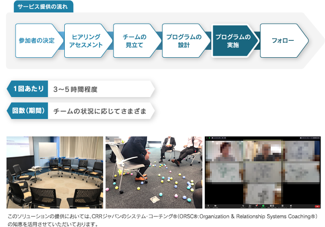 従って、効果的なコーチングを行うためにも、事前にヒアリングやアセスメントを実施し、その内容からチームに対する見立てを行い、実施するプログラムの内容や回数を設計します。